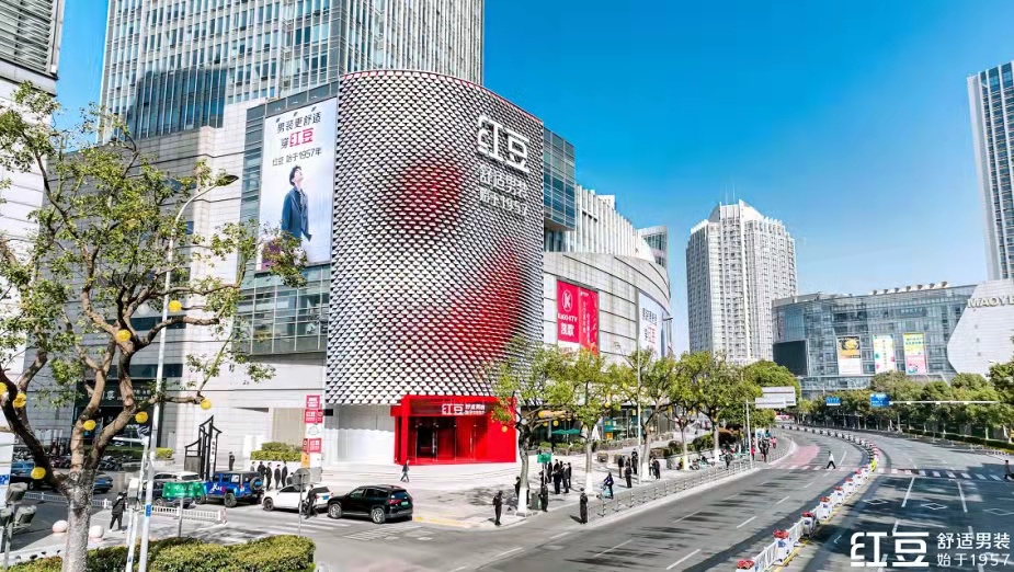 今年2月,红豆男装第六代门店——1000平米的无锡中山路红豆男装超级旗舰店揭幕,门店由法国设计师托马斯倾力打造。作为全新概念的旗舰店,别具特色的“中国红”门头采用35米高、68根龙骨,2680个银色叶片组成,内部陈列上,展示了数字经济时代的消费场景,及企业在数字经济方面的快速发展和积极实践。