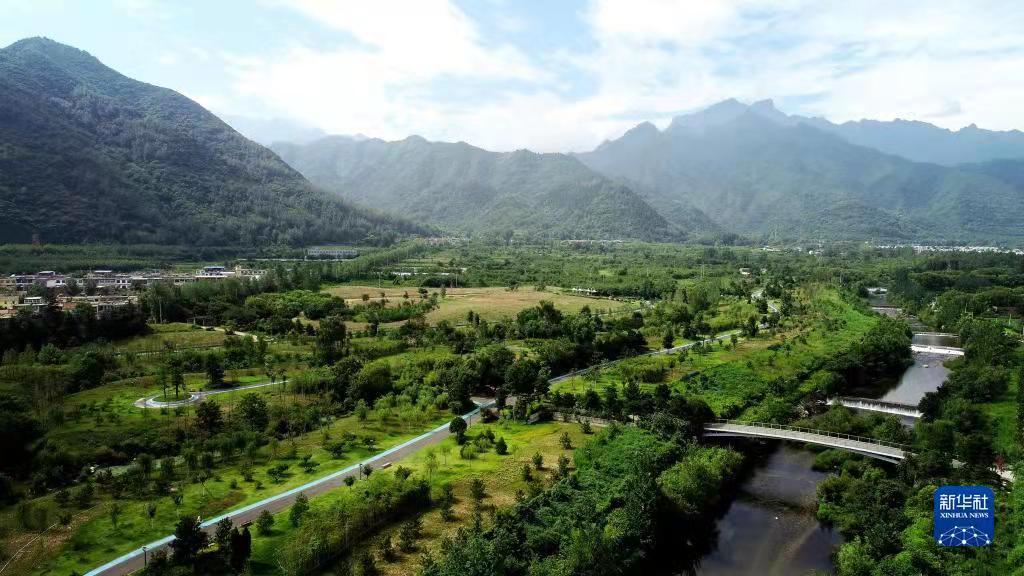 这是陕西省西安市长安区秦岭违建别墅“群贤别业”拆除后建设的秦岭和谐森林公园(2019年7月26日摄,无人机照片)。新华社记者 刘潇 摄