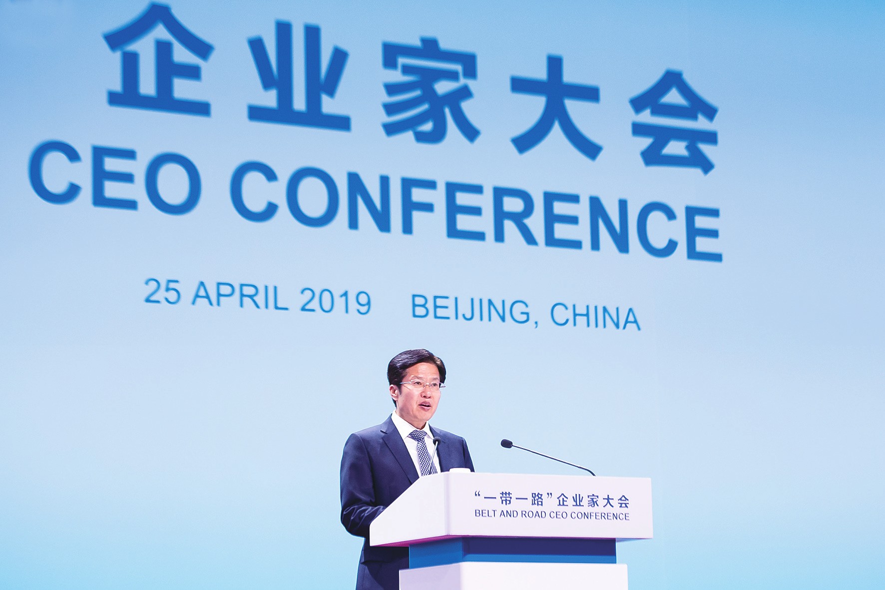 25日,“一带一路”企业家大会在北京举行。企业家大会是第二届“一带一路”国际合作高峰论坛的增长点和新亮点,全国政协副主席、全国工商联主席高云龙,国务院国资委主任肖亚庆,中国贸促会会长高燕出席全体会议并致辞。