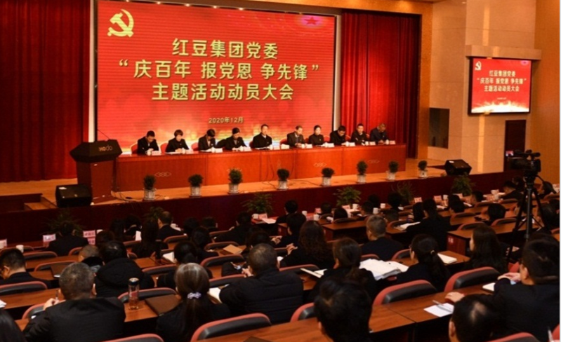 12月14日,红豆集团召开“庆百年 报党恩 争先锋”主题活动动员大会,集团党委班子全体成员在主席台就坐,1300多名共产党员参加了会议。大会上,红豆集团党委书记、董事局主席周海江指出,面对今年突如其来的新冠肺炎疫情以及历史上的各种危机,在中国共产党的领导下我们都能化险为夷,足以见得我们党的伟大之处。今年12月到明年上半年,全球经济将面临更大的挑战,作为全国先进基层党组织,红豆集团要一如既往坚决贯彻落实党中央决策部署,积极危中寻机,加快企业转型升级,在危机中育新机、于变局中开新局。对于如何报党恩?周海江号召集团党员一方面要以更好的成绩来迎接建党100周年,另一方面要以更多的努力来接受挑战、抓住机遇、实现发展,切实发展经济,造福社会。