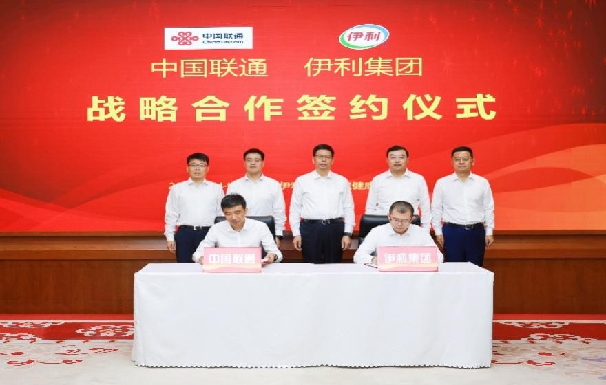 伊利集团董事长、总裁潘刚与中国联通董事长陈忠岳就深化合作举行座谈,并共同见证双方签署战略合作协议。伊利集团执行总裁王维,中国联通内蒙古分公司总经理韩敏出席仪式;伊利集团副总裁马飞,中国联通集团政企客户事业群常务副总裁冯华骏分别代表双方签约。
