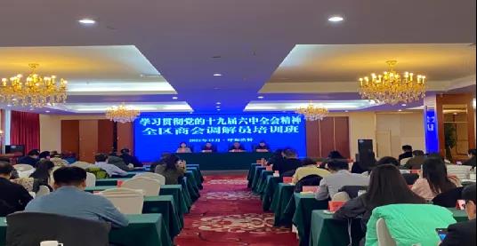 赵庆禄指出,做好新时期商会调解工作意义重大。党的十九届六中全会审议通过的《中共中央关于党的百年奋斗重大成就和历史经验的决议》强调,“全面依法治国最广泛、最深厚的基础是人民,必须把体现人民利益、反映人民愿望、维护人民权益、增进人民福祉落实到全面依法治国各领域全过程,保障和促进社会公平正义,努力让人民群众在每一项法律制定、每一个执法决定、每一宗司法案件中都感受到公平正义”。因此,贯彻落实党的十九届六中全会精神,加强法律服务工作,是工商联、商会参与法治建设与社会治理,践行理想信念教育实践活动的客观需要和重要任务。