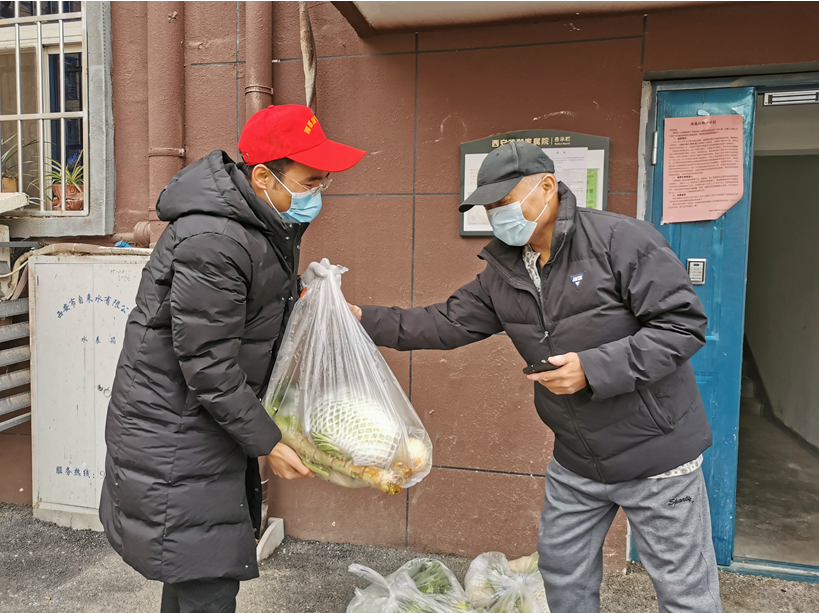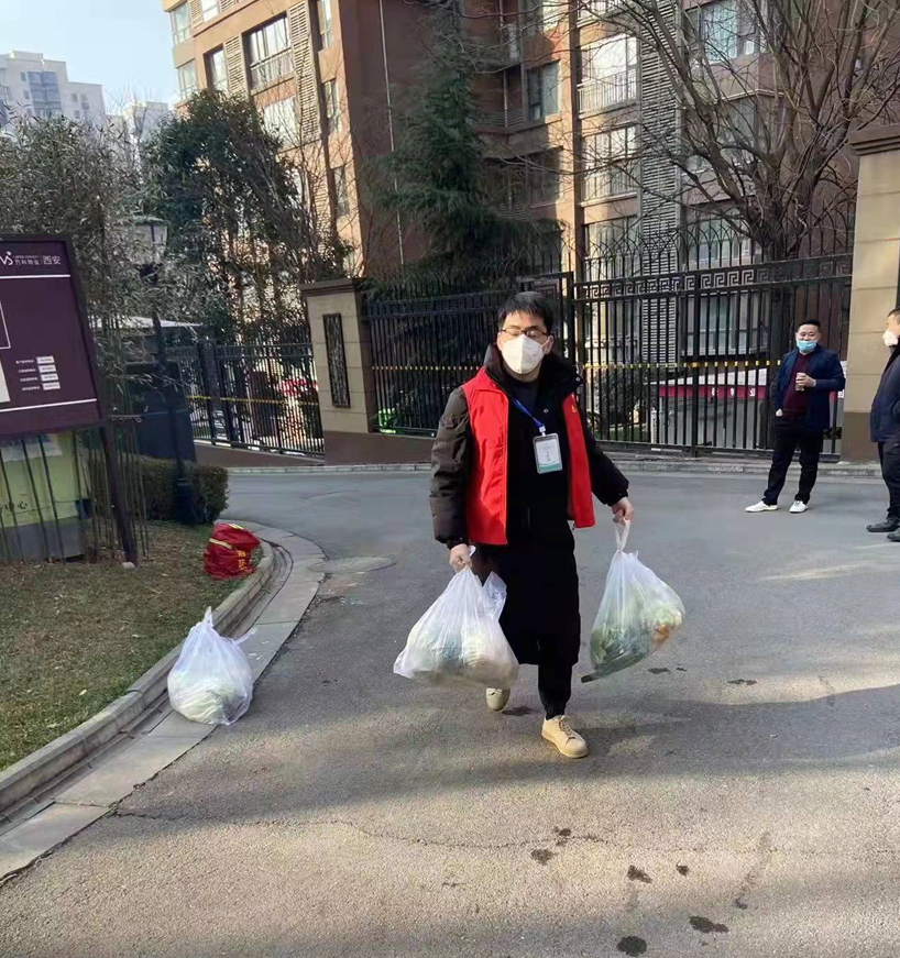 除了核酸检测、环境消杀、入户动员等工作,和王稳苗一样,鲁成也去上门送菜。送菜时发现小区有7户独居老人因封闭管理,生活十分不便,于是他立即向单位领导报告了这一情况。