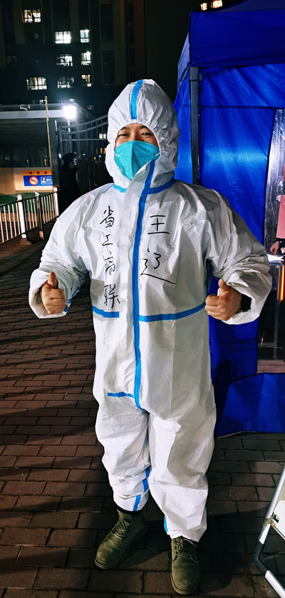 “我在抗击疫情的最前线,聆听着习近平总书记的新年贺词,备受鼓舞。我们每天扎实做好所在社区组织的核酸检测、物资配送、值守执勤、便民服务等各项保障工作,尽全力帮群众解决‘急难愁盼’问题,我想这就是‘我为群众办实事’,每个人都是一座战斗堡垒!我们在用实际行动向党和人民交出一份合格的抗疫答卷!”寒风冷夜里,王辽坚定地说。