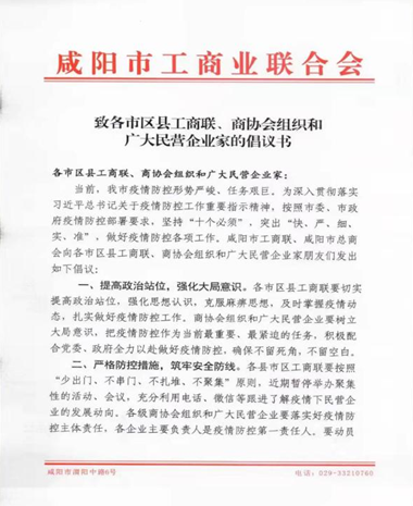 与此同时,陕西省工商联机关总支委员会同步下发了《致省工商联广大党员和机关干部的倡议书》,倡议机关全体党员特别是党员领导干部带头深入疫情防控一线,积极下沉到所在小区、社区进行疫情防控工作。