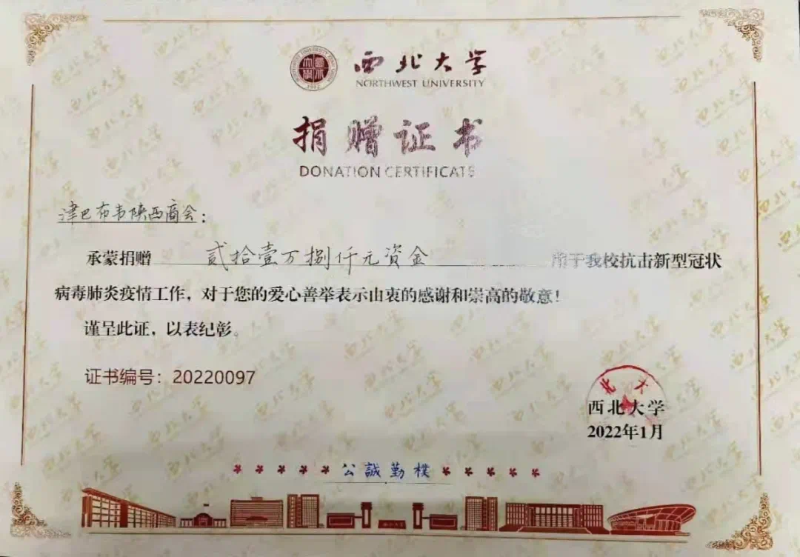 异地陕西商会:听闻陕西疫情,津巴布韦陕西商会发起募捐活动,累计募集资金21.8万元,已捐赠给西北大学用于支持抗击疫情。青岛市陕西商会积极动员广大会员、同乡开展爱心捐赠,筹集到餐盒2228箱,防疫用品103箱,总价值19.31万元,已捐赠给西安建筑科技大学教育基金会。除此之外,商会会员通过个人渠道捐赠西安抗疫物资30.86余万元。河北省陕西商会常务副会长单位陕西花之吻企业管理有限公司筹集到40000瓶牛奶,40000只医用外科口罩及20000个食品分装袋等价值近13万元的抗疫物资助力西安财经大学疫情防控工作。
