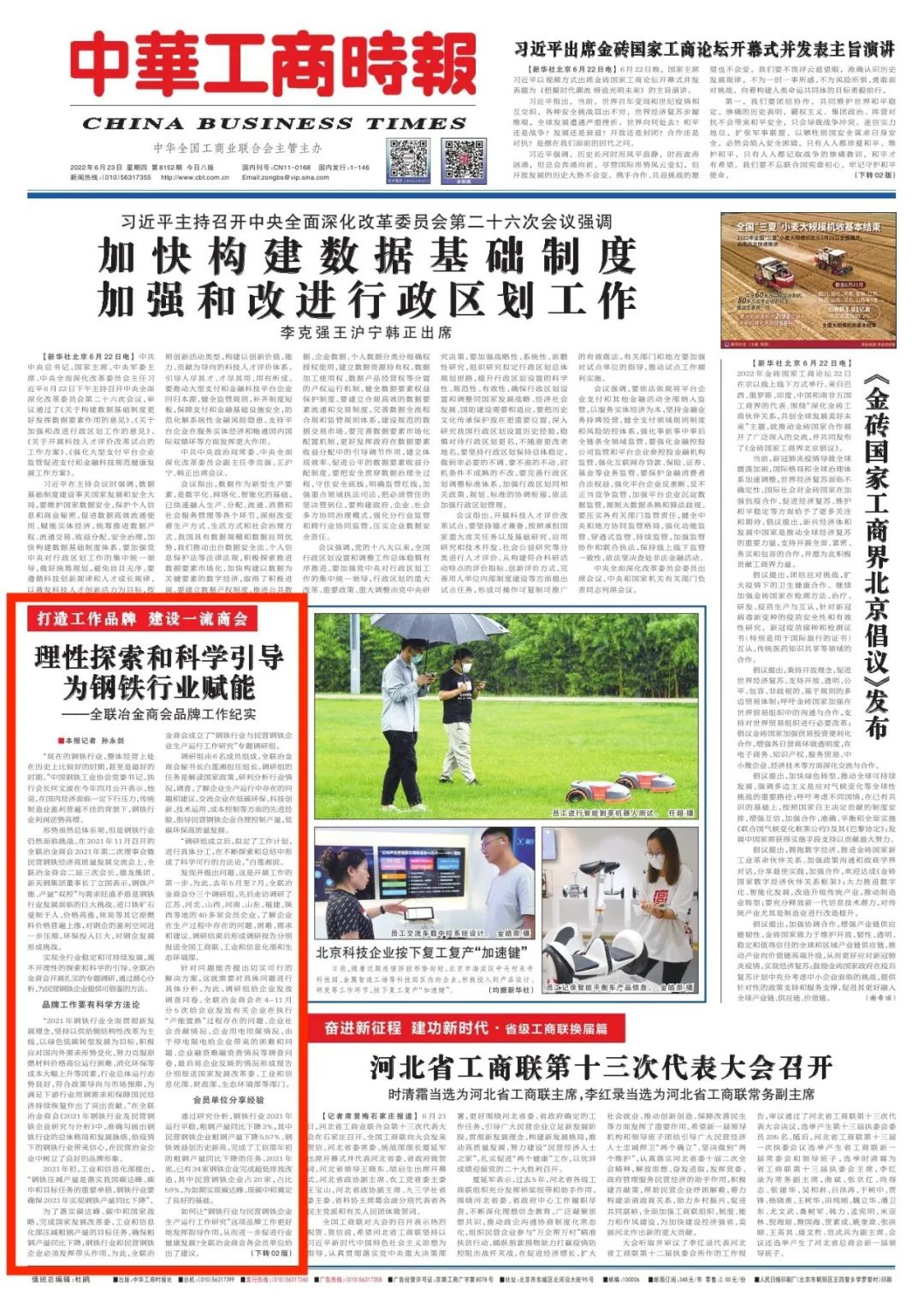 “2021年钢铁行业全面贯彻新发展理念,坚持以供给侧结构性改革为主线,以绿色低碳转型发展为目标,积极应对国内外需求形势变化,努力克服原燃材料价格高位运行困难、消化环保等成本大幅上升等因素,行业总体运行态势良好,符合政策导向与市场预期,为满足下游行业用钢需求和保障国民经济持续恢复作出了突出贡献。”在全联冶金商会《2021年钢铁行业及民营钢铁企业研究与分析》中,准确勾画出钢铁行业的总体格局和发展脉络,给疫情下的钢铁行业带来信心,在民营冶金企业中树立了良好的品牌形象。