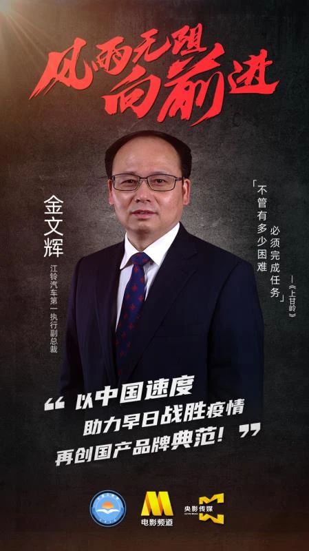“ 以中国速度助力早日战胜疫情,再创国产品牌典范!” —— 江铃汽车第一执行副总裁 金文辉