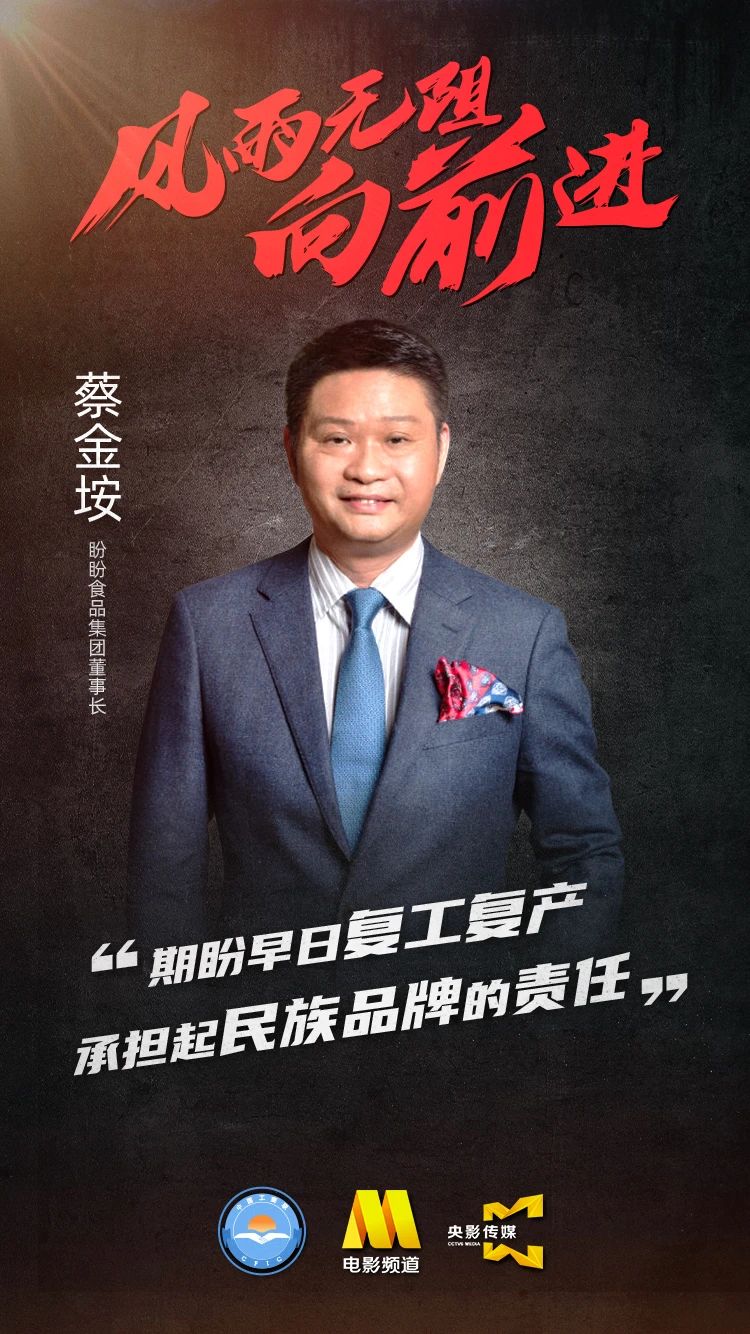 “ 期盼早日复工复产,承担起民族品牌的责任。”—— 盼盼食品集团董事长 蔡金垵