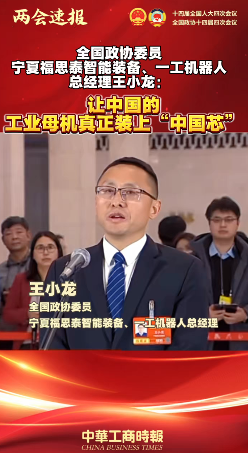 全国政协委员、宁夏福思泰智能装备、一工机器人总经理王小龙:让中国的工业母机真正装上“中国芯”