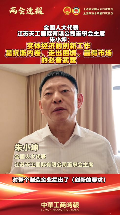 全国人大代表、江苏天工国际有限公司董事会主席朱小坤:实体经济的创新工作是抗衡内卷、走出困境、赢得市场的必备武器