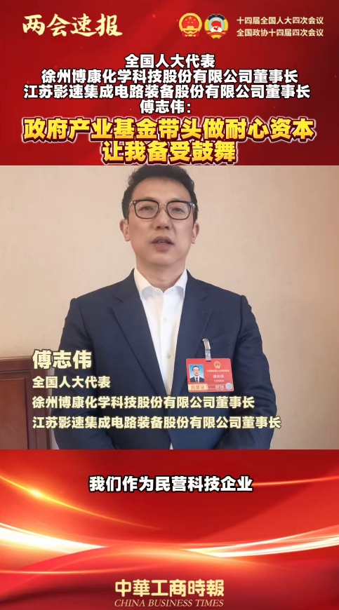 全国人大代表、徐州博康化学科技股份有限公司董事长、江苏影速集成电路装备股份有限公司董事长傅志伟:政府产业基金带头做耐心资本让我备受鼓舞