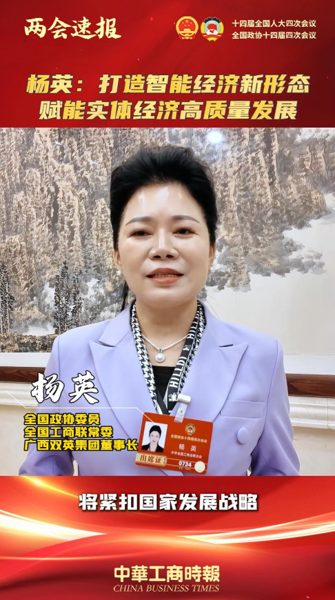 全国政协委员、全国工商联常委、广西双英集团董事长杨英:打造智能经济新形态赋能实体经济高质量发展