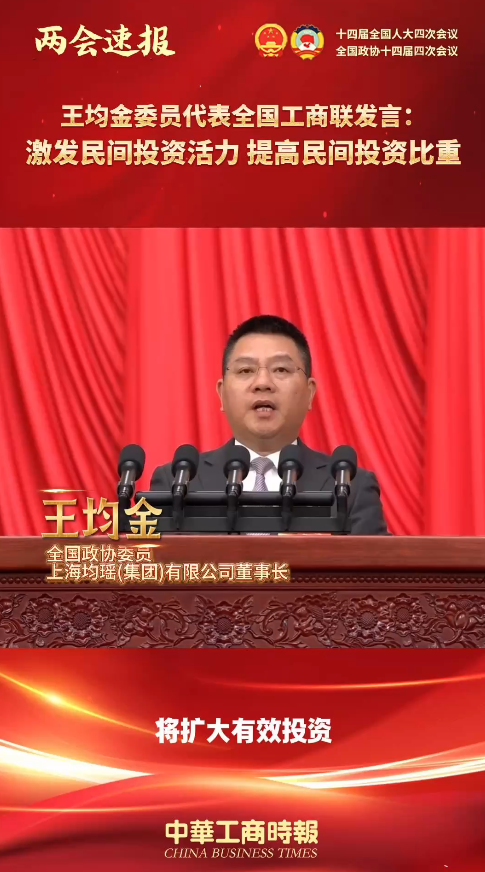 全国政协委员、上海均瑶(集团)有限公司董事长王均金代表全国工商联发言:激发民间投资活力,提高民间投资比重