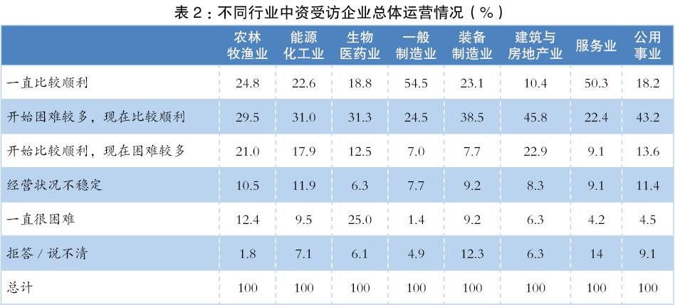 其一,生物医药业、建筑与房地产业、农林牧渔业发展困难相对较大。(见表2)
