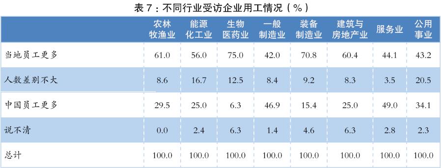 其七,一般制造业和服务业企业的员工本土化还有待发展。(见表7)