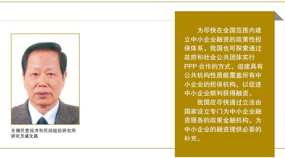 2.要加快建立公共机构性质的中小企业担保机构体系。2018年,我国国家融资担保基金有限责任公司正式成立,这是在我国开展中小企业融资政策性担保的一个重要尝试,但其主要功能是再担保业务,即对符合条件的省级再担保机构提供一定比例的风险分担。至于各省市的中小企业政策性公共担保机构体系至今还没有建立起来,已经成立的大量私营担保公司对于帮助中小企业融资的作用又十分有限。这在很大程度上制约了中小企业向商业银行顺利融资。为尽快在全国范围内建立中小企业融资的政策性担保体系,我国也可探索通过政府和社会公共团体实行PPP合作的方式,组建具有公共机构性质能覆盖所有中小企业的担保机构,以促进中小企业顺利获得融资。